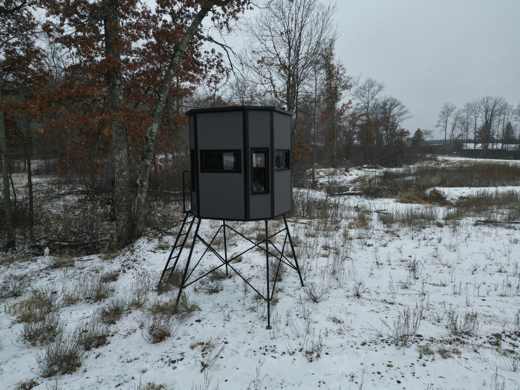 The Greylight Tower sits at 6' high when fully assembled and features a 6' octagonal platform for your blind. Each leg provides up to 14" of independent adjustment to accommodate uneven ground. A platform height of 6' provides an ideal setting for most hunting blind scenarios. The Greylight 6' Tower provides platform constructed of expanded metal mesh welded to a 3/4" tube frame. This platform provides versatile mounting attachements for the blind of your choice.